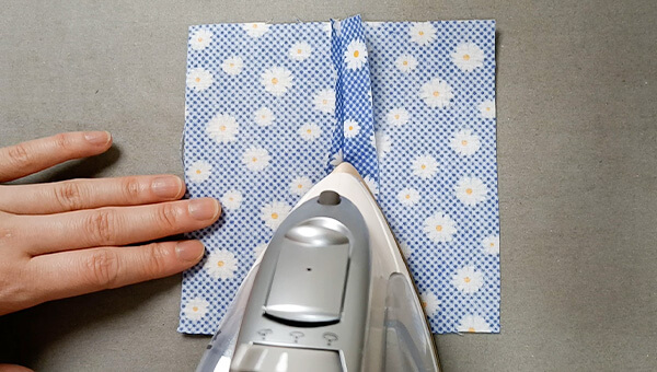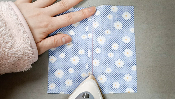 さらに、ステッチをかける側に倒してアイロンで折ります。